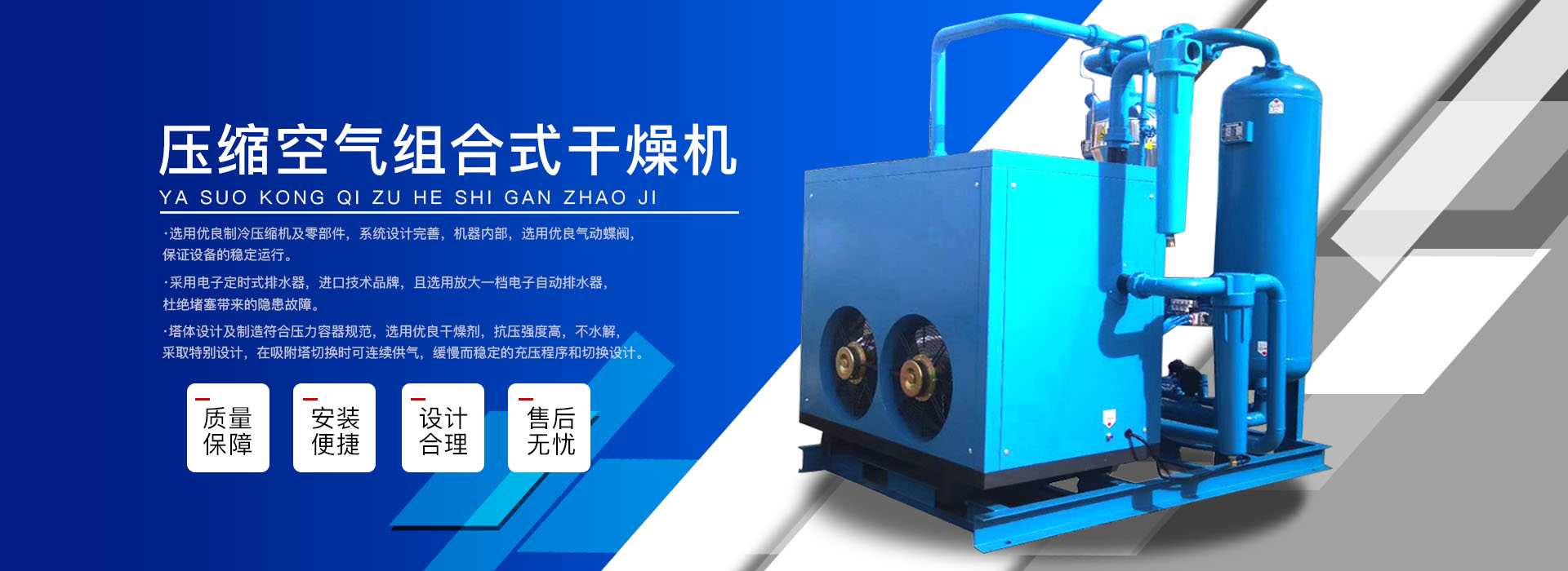本公司系中國科學院、重鋼院、機電技術(shù)設(shè)計院、氣動技術(shù)研究所等相關(guān)專家合作的具有雄厚技術(shù)力量的高科技實體,是一個專業(yè)從事各種氣體干燥凈化及分離純化設(shè)備研究開發(fā)及推廣應(yīng)用的高科技公司。公司積多年對壓縮空氣凈化設(shè)備的生產(chǎn)技術(shù)和銷售經(jīng)驗,并在消化吸收國外先進技術(shù)的基礎(chǔ)上,結(jié)合國內(nèi)實際工況特點,研制出適合國內(nèi)外廣大用戶的“滬盛”牌HSD系列壓縮空氣冷凍式干燥機、吸附式干燥機、后部冷卻器、預(yù)冷機組、工業(yè)用冷水機組和HF系列壓縮空氣高效精密過濾器(國產(chǎn)濾殼,美國漢克森HANKISON濾芯)等13大系列計300多種規(guī)格產(chǎn)品。并且新研發(fā)出燥式干器, 廣泛應(yīng)用于電力、冶金、電子、機械、石油、化工、汽車制造、紡織、化纖、輕工、造紙、橡膠、儀表、食品、空氣、卷煙、生物、醫(yī)藥、日化等行業(yè),在國內(nèi)同行業(yè)中一直處于領(lǐng)先地位。